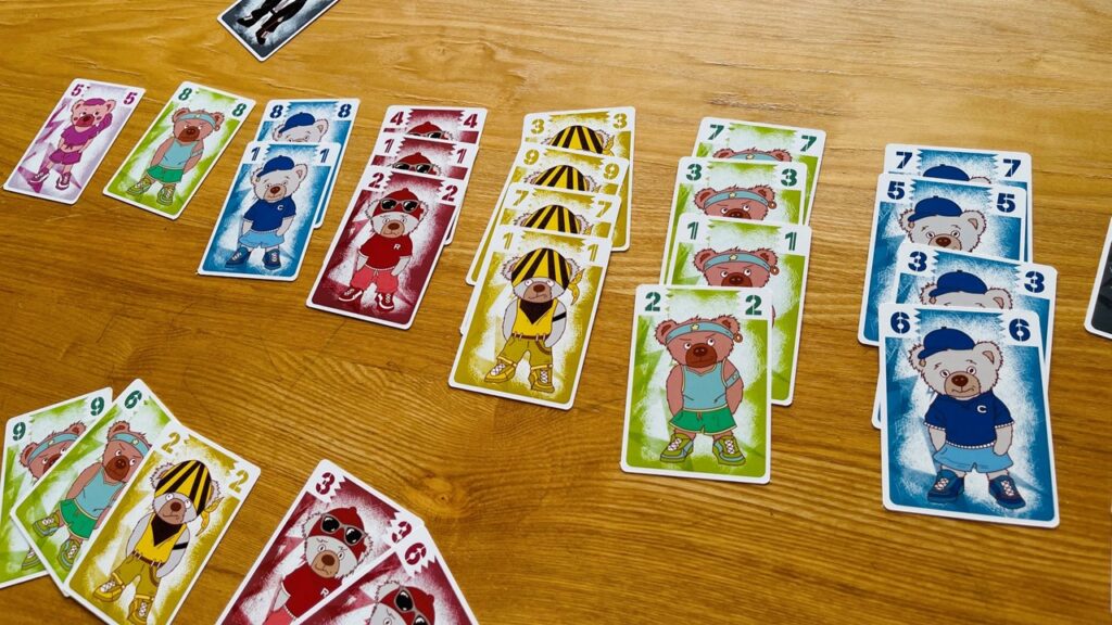 自分の手番になったら直前に出されたカードより大きい数字を手札から出していき、いち早く手札を出し切ることを目指します。一人が手札全てを出し切ったらラウンド終了で、他プレイヤーの残った手札が枚数分失点となります。誰かが-10点以上到達したらゲーム終了でその時点で一番失点が少ないプレイヤーが勝者となります。